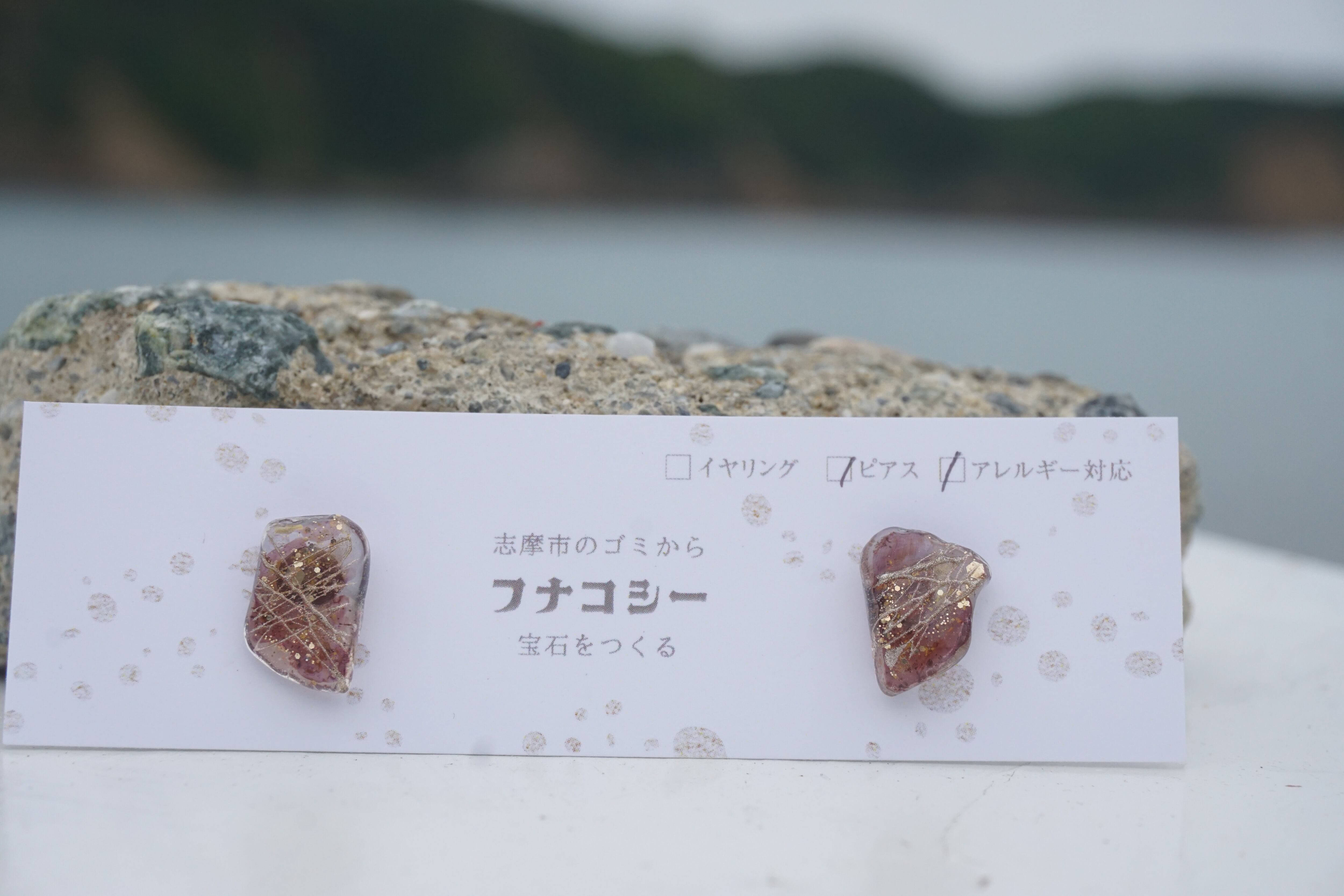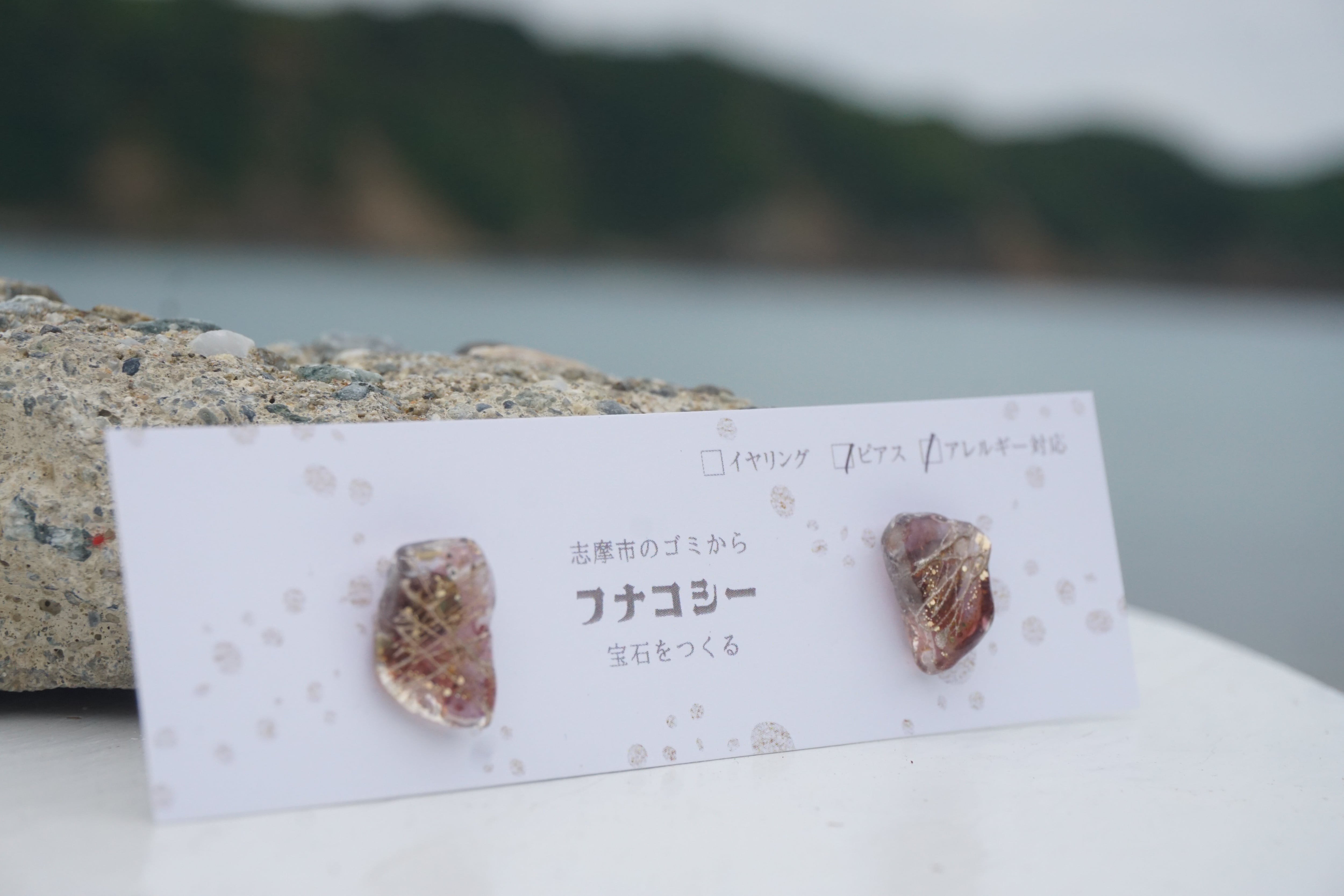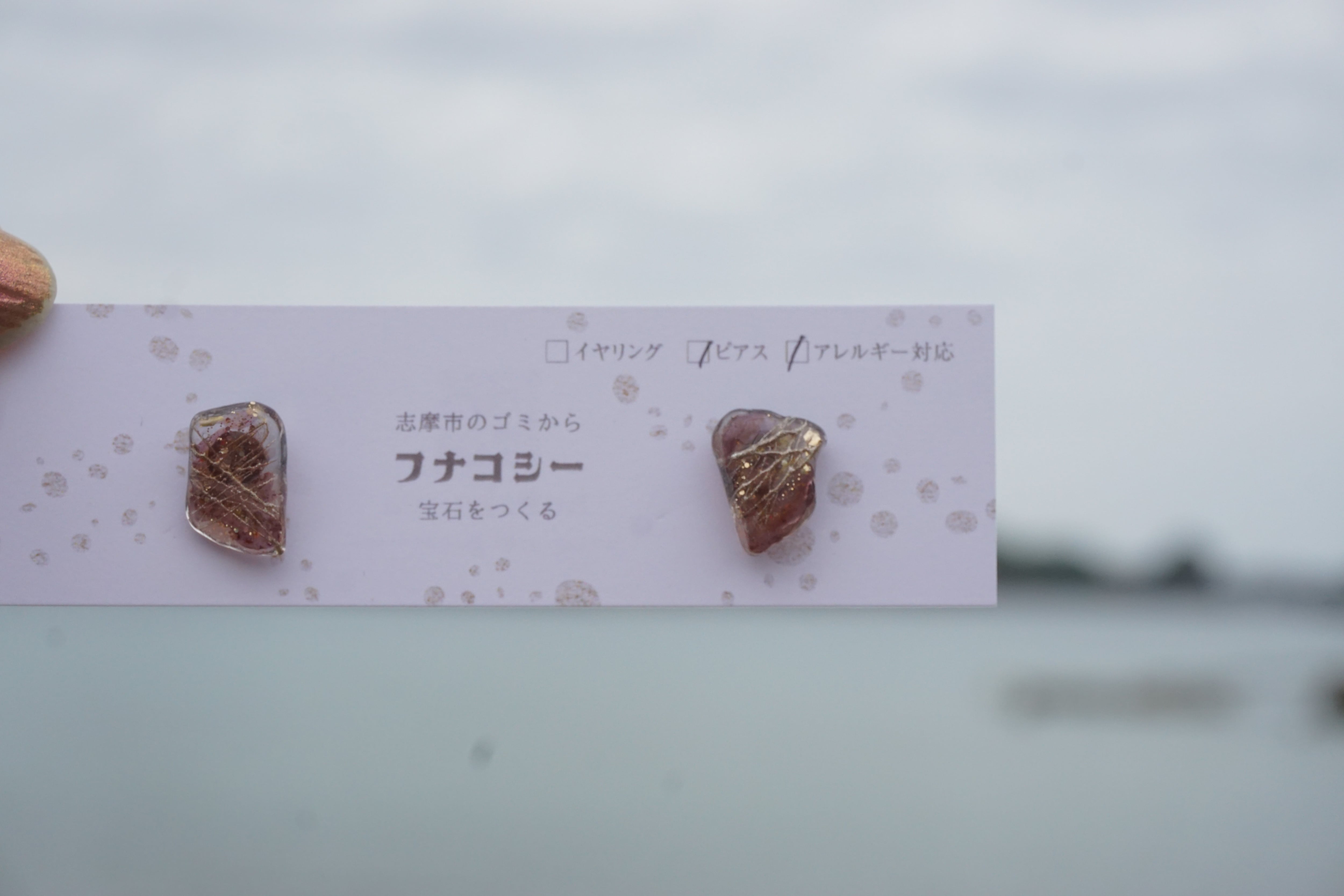 大王町船越の浜で拾い集めたシーグラスを、自宅の工房でアクセサリーにしました。