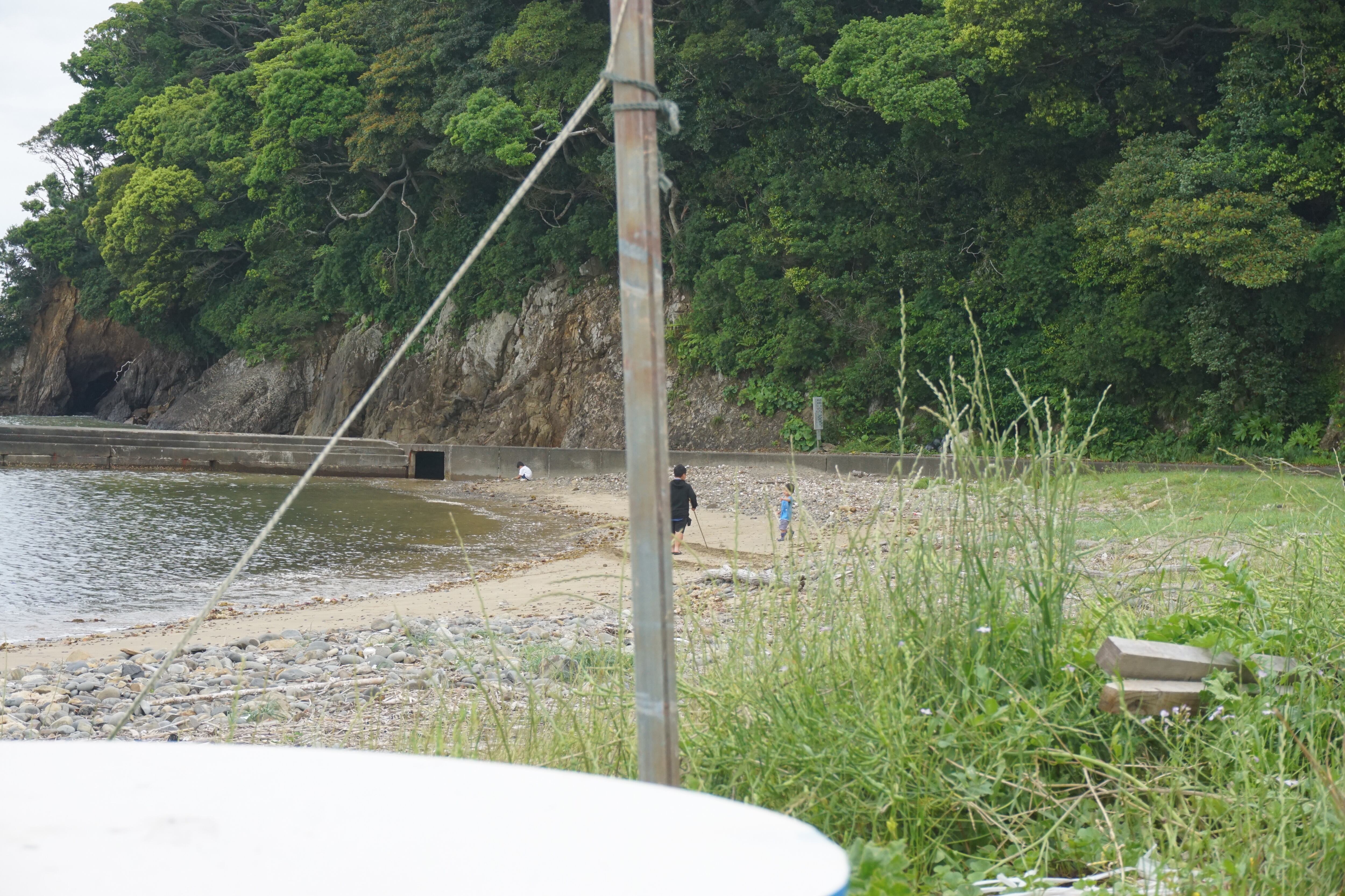 一緒にシーグラスを集め、こどもたちは流木で家を作り、私は撮影作業をするなどして過ごしてます。こんな環境で作って販売しているモノでございます。