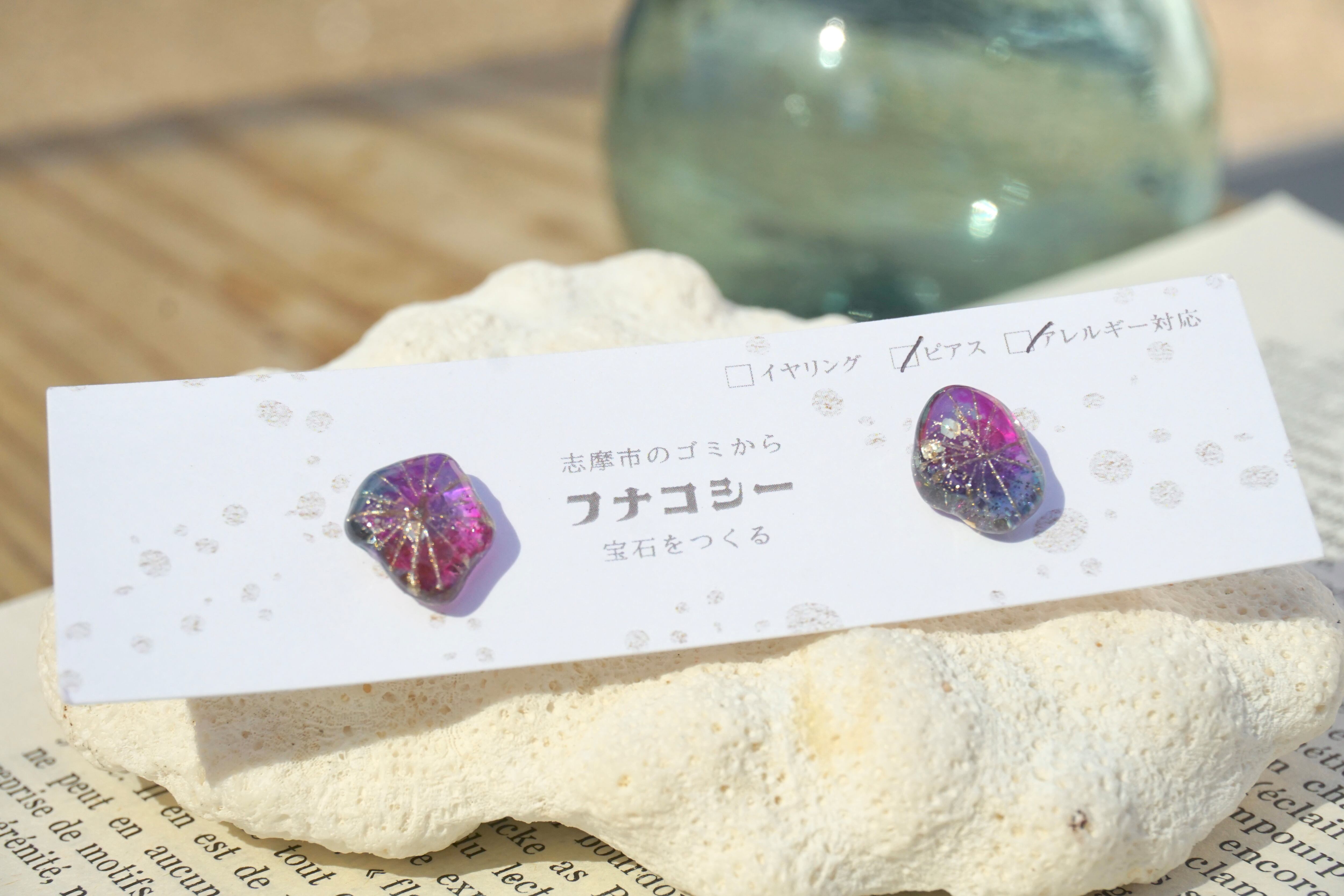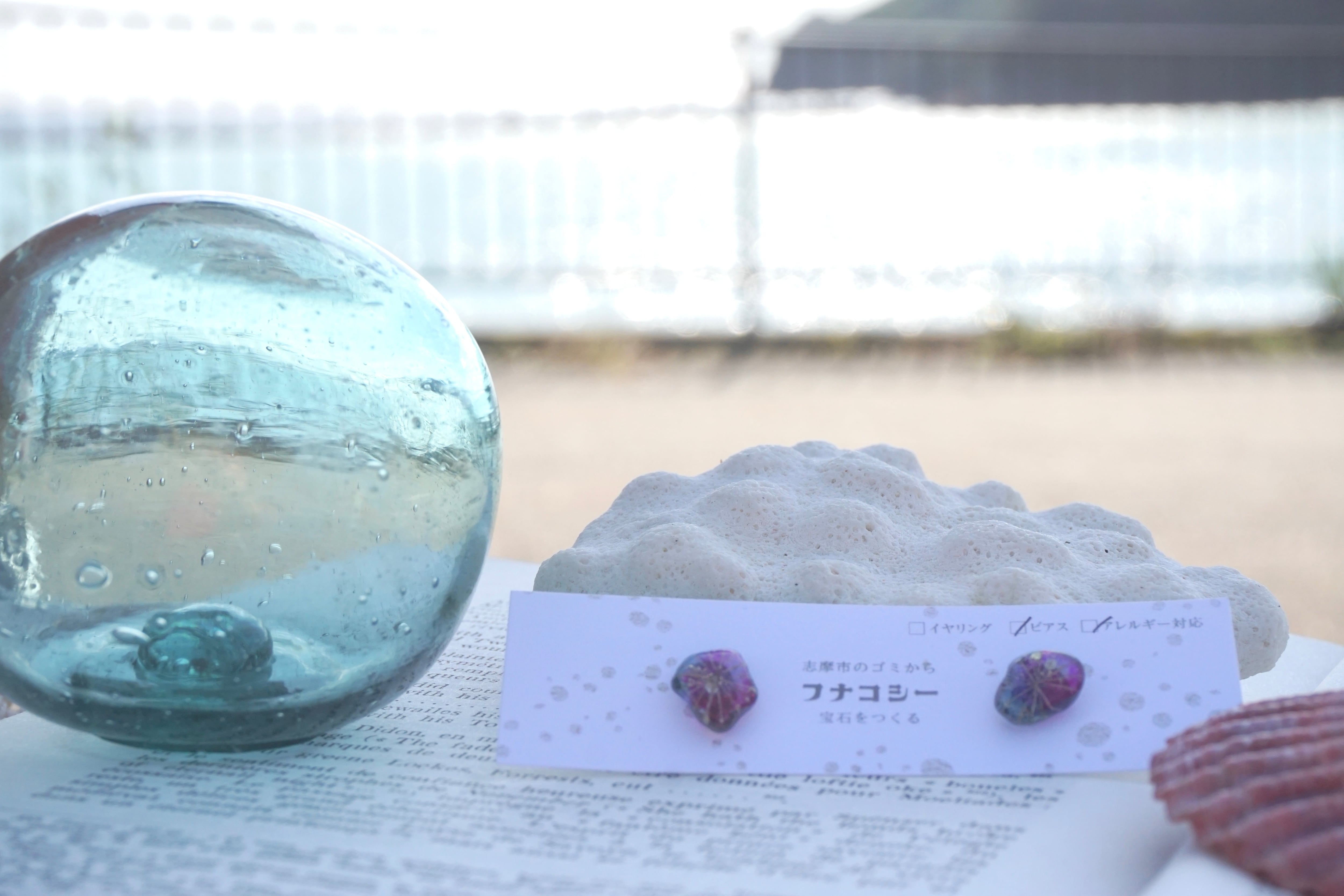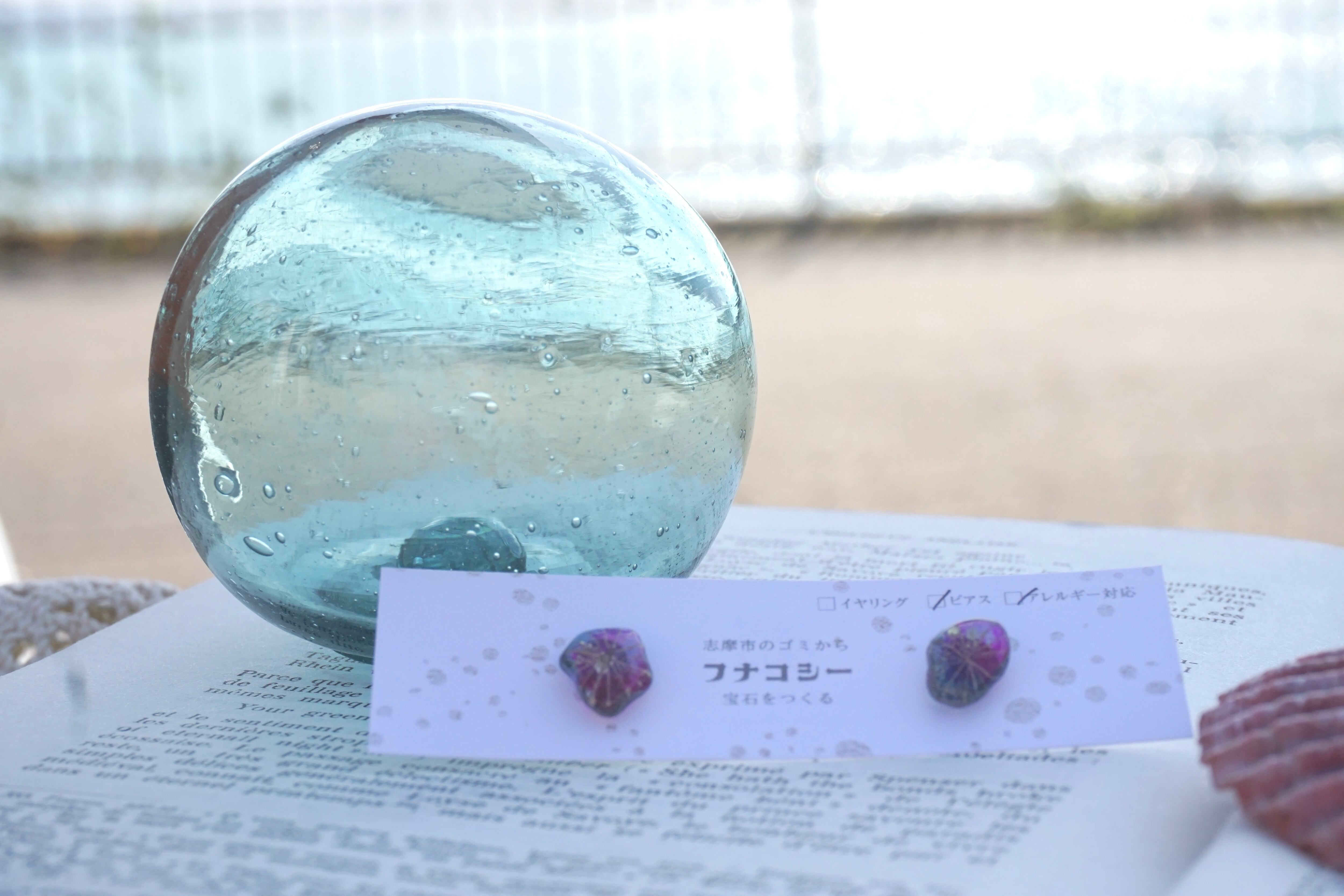 大王町船越の浜で拾い集めたシーグラスを、自宅の工房でアクセサリーにしました。