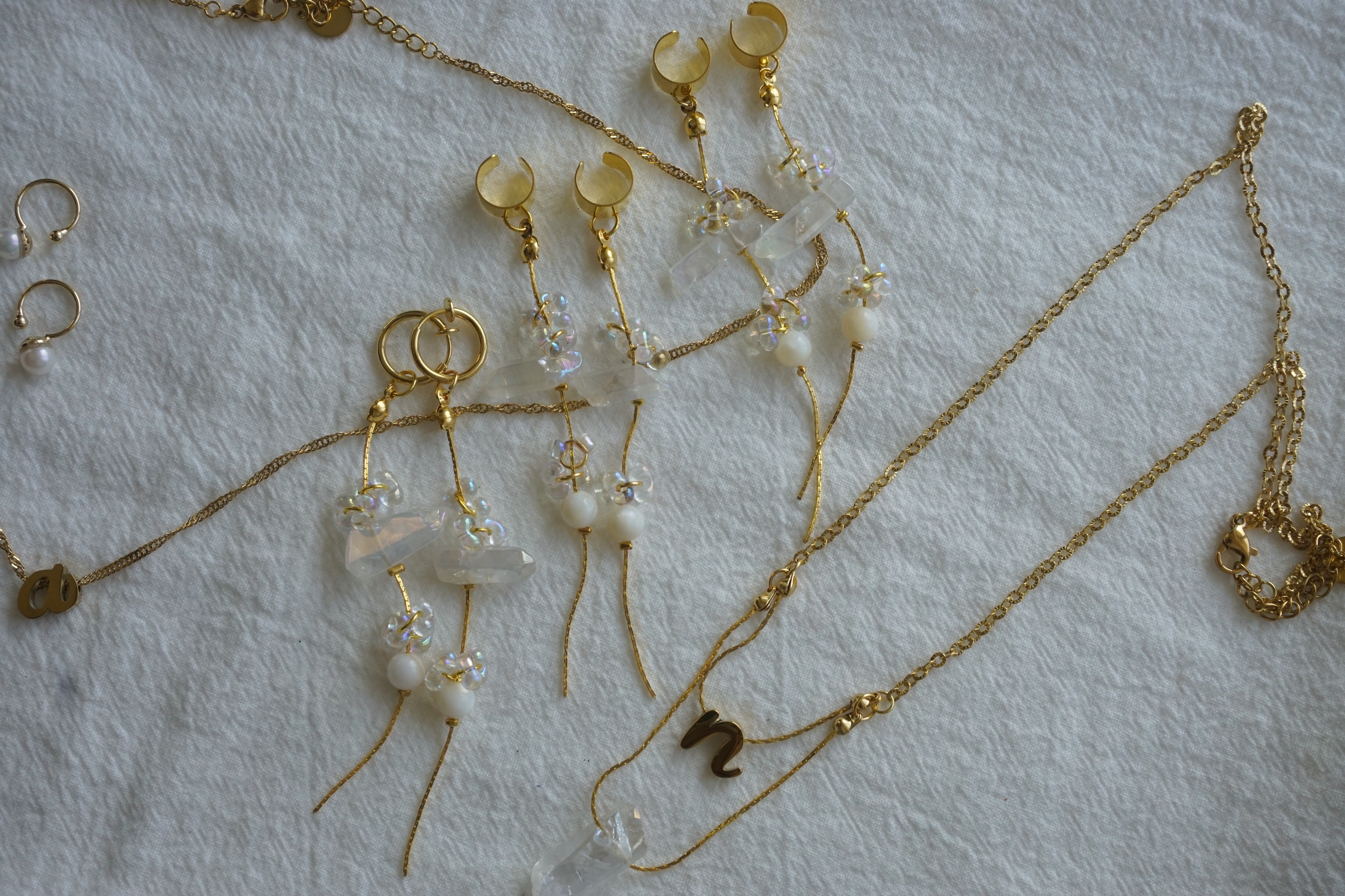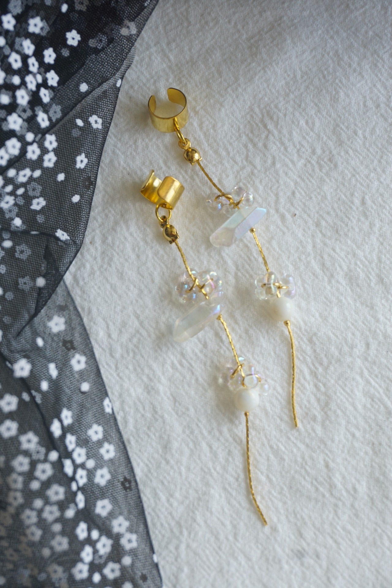 水晶と真珠の核 イヤーカフ | hunakosea123