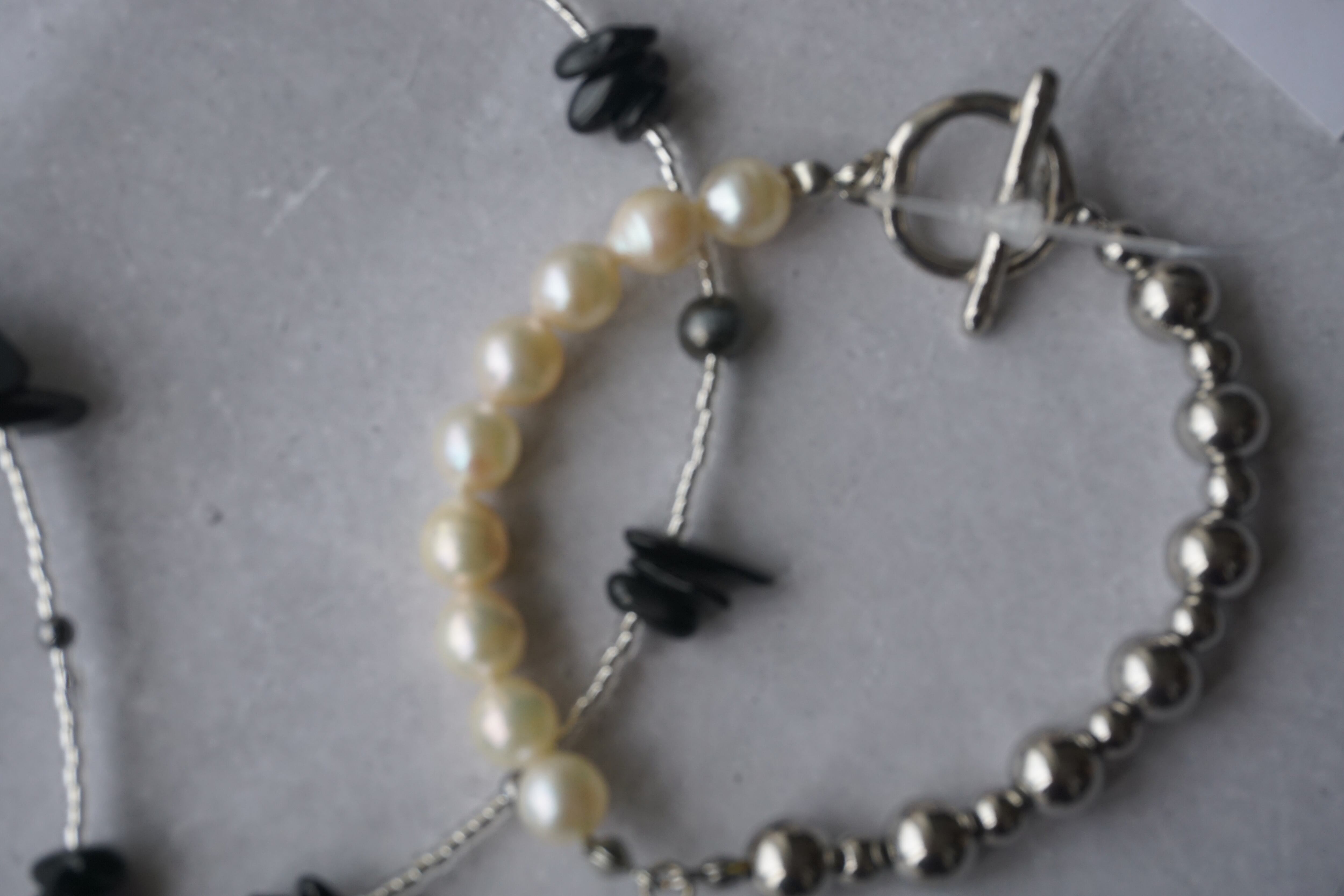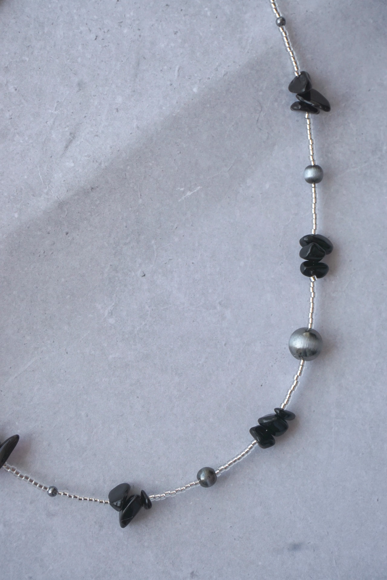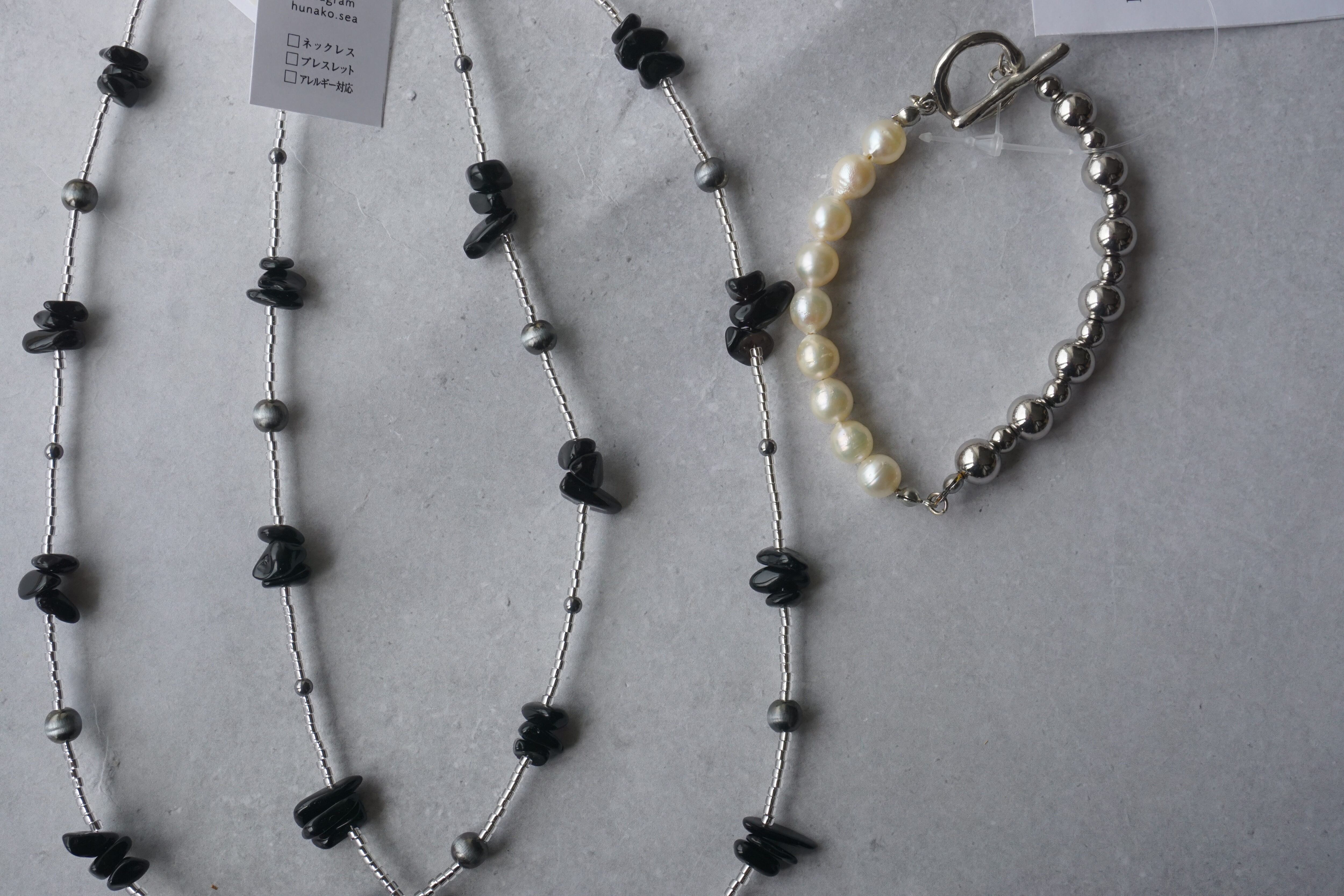 黒瑪瑙、テラヘルツなどの天然石を織り交ぜた