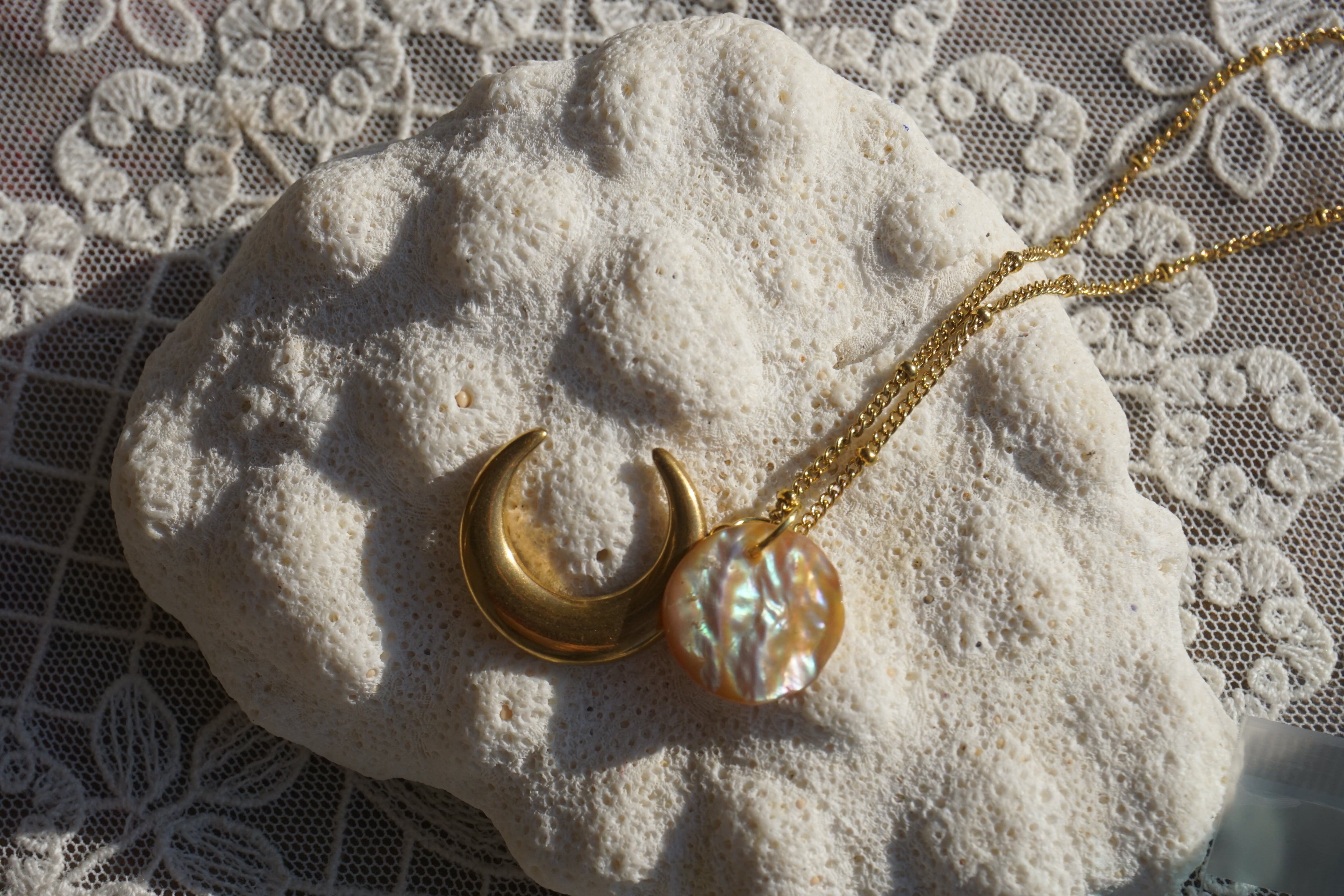アワビと月のネックレス