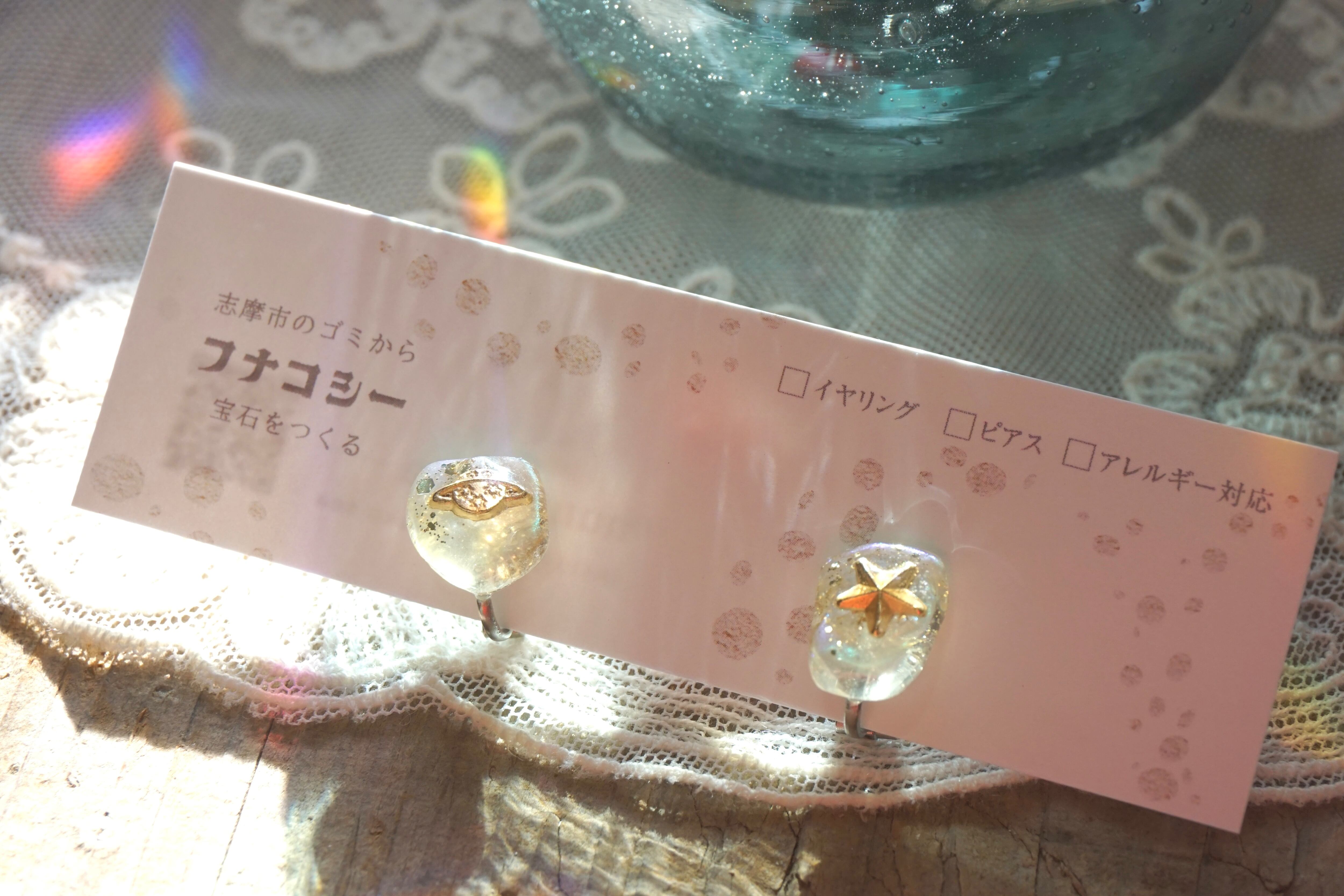 シーグラスに惑星のモチーフがついています。