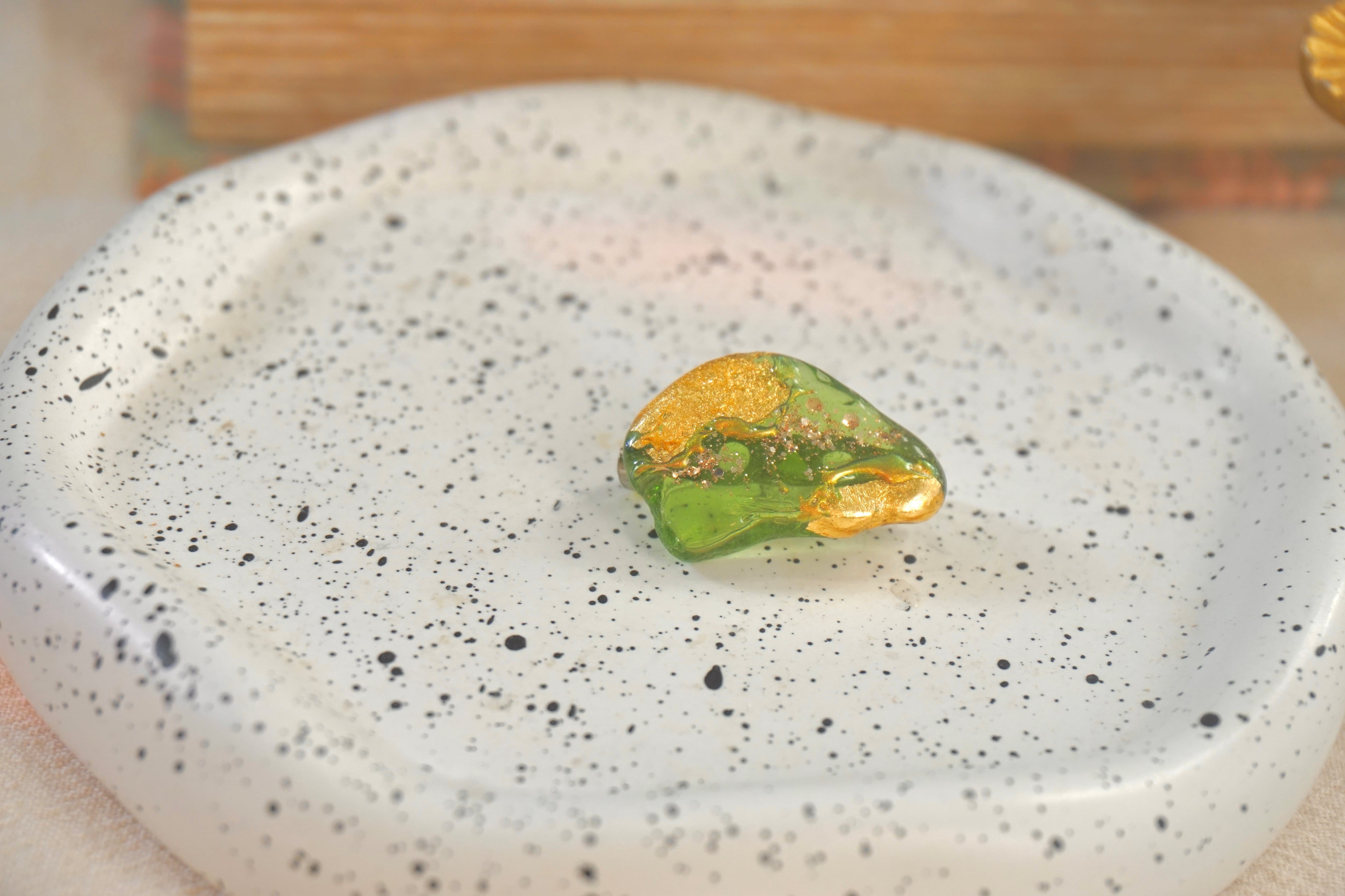 大王町船越にあります榊浜(さかきのはま)にて拾い集めたシーグラスを、船越神社にて祓い清めていただいき作った『大吉ブローチ』