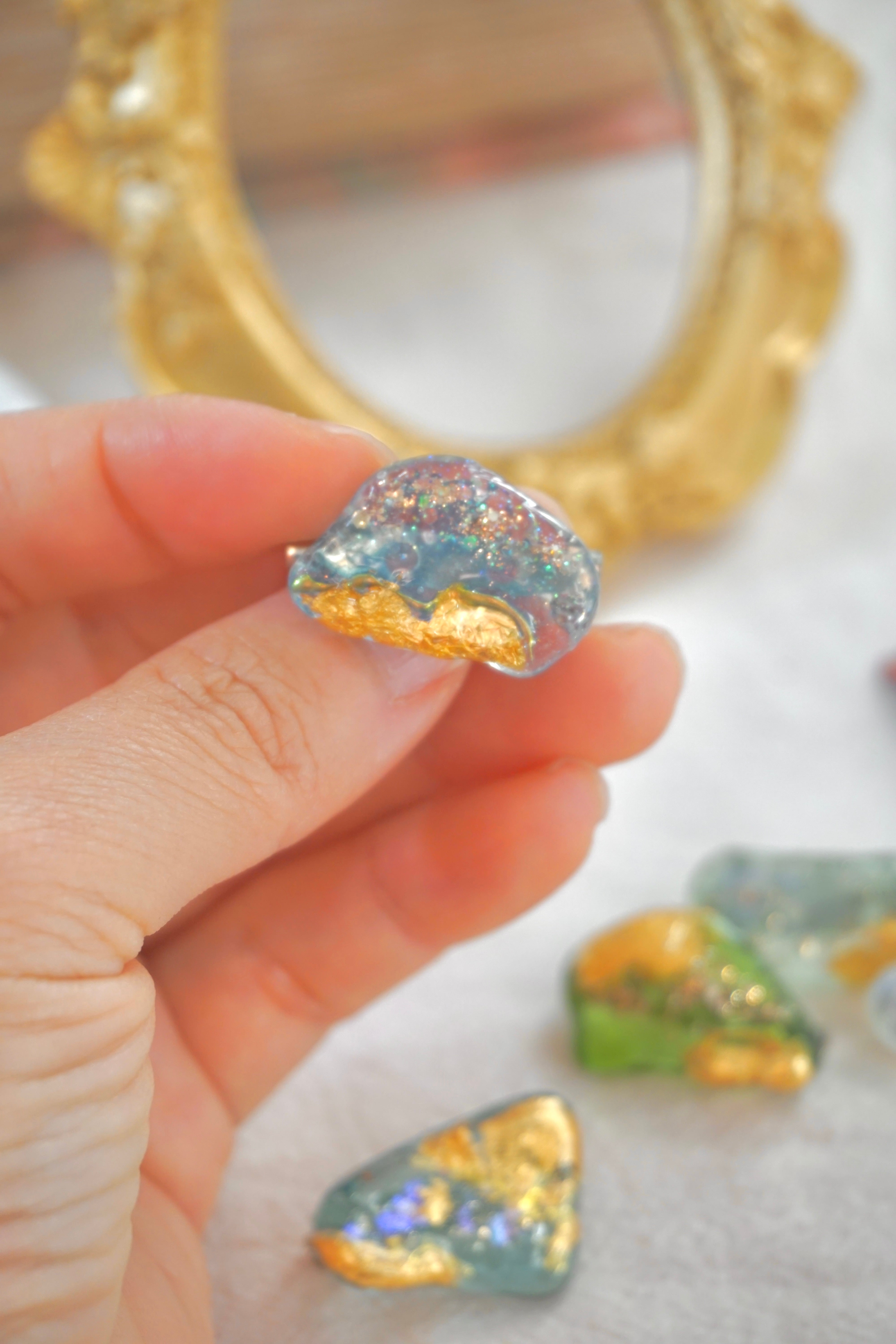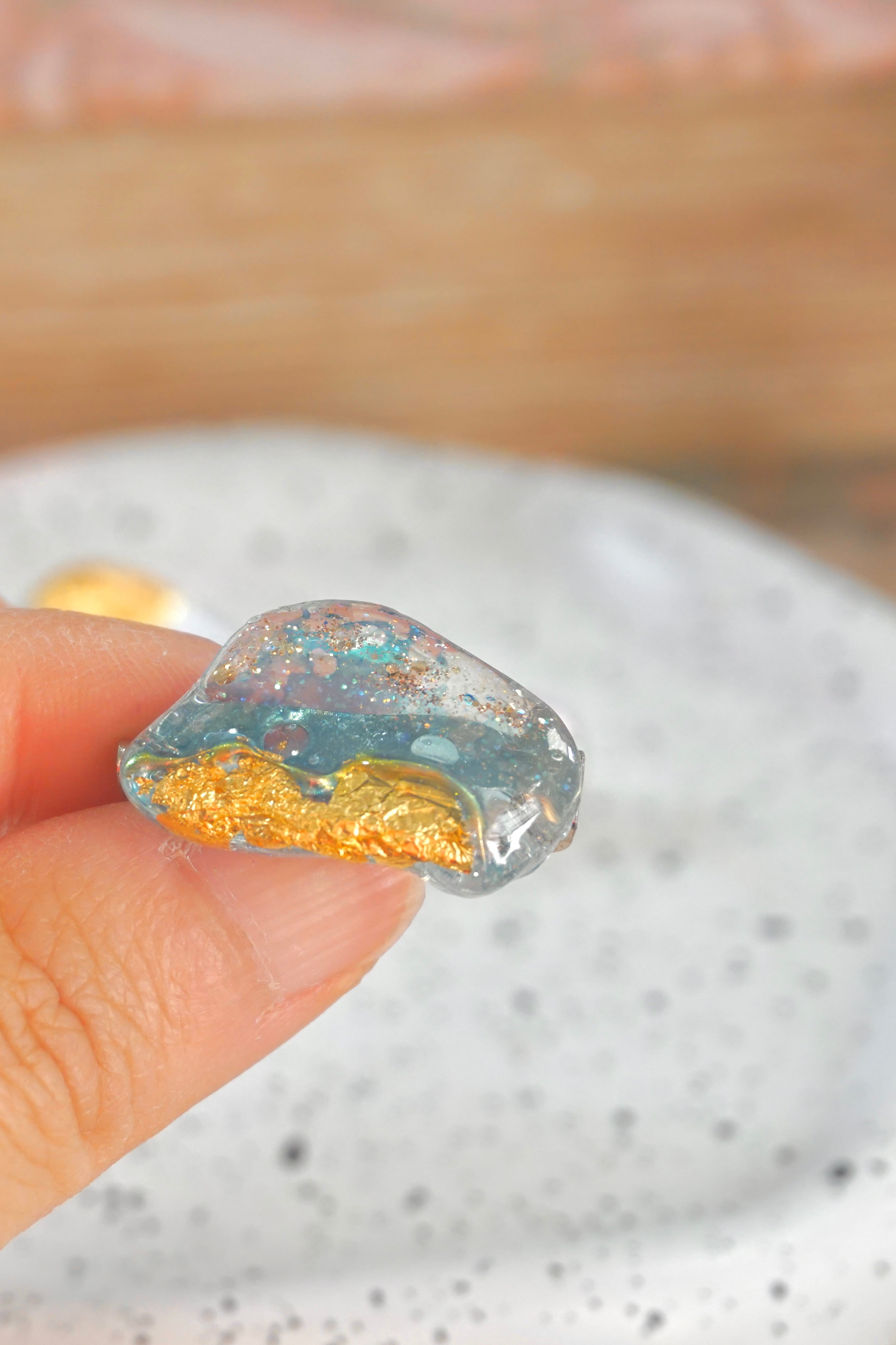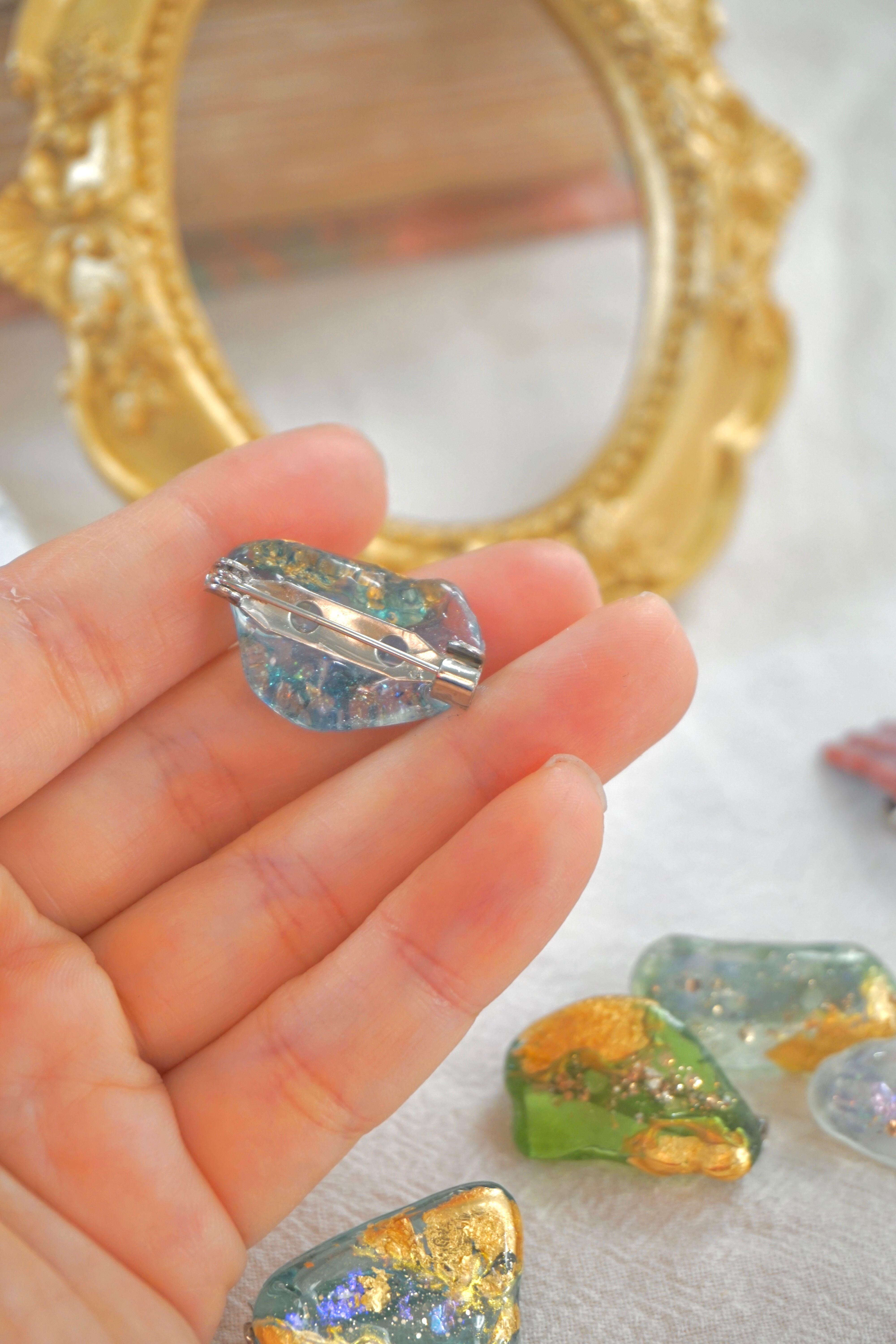 大王町船越にあります榊浜(さかきのはま)にて拾い集めたシーグラスを、船越神社にて祓い清めていただいき作った『大吉ブローチ』