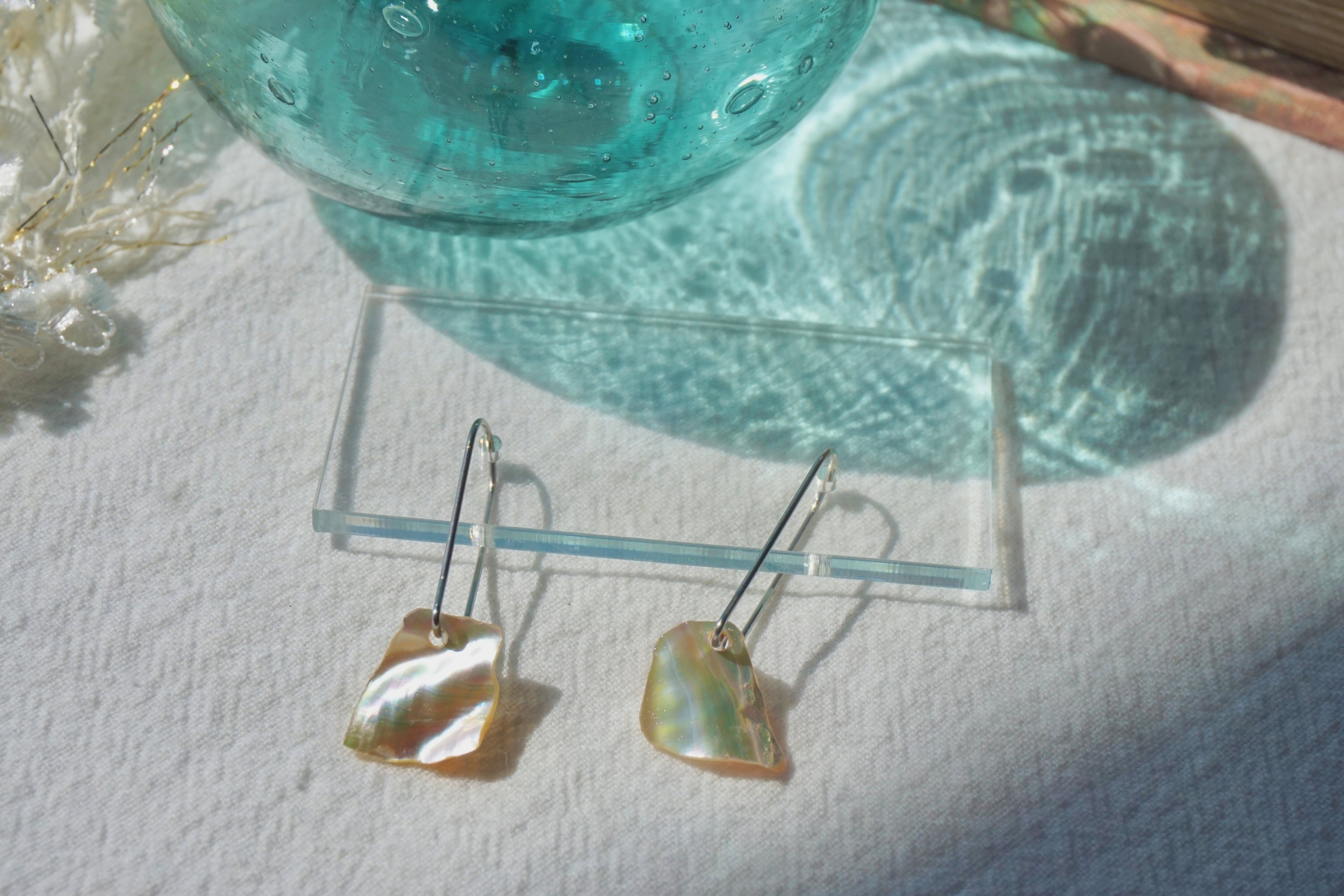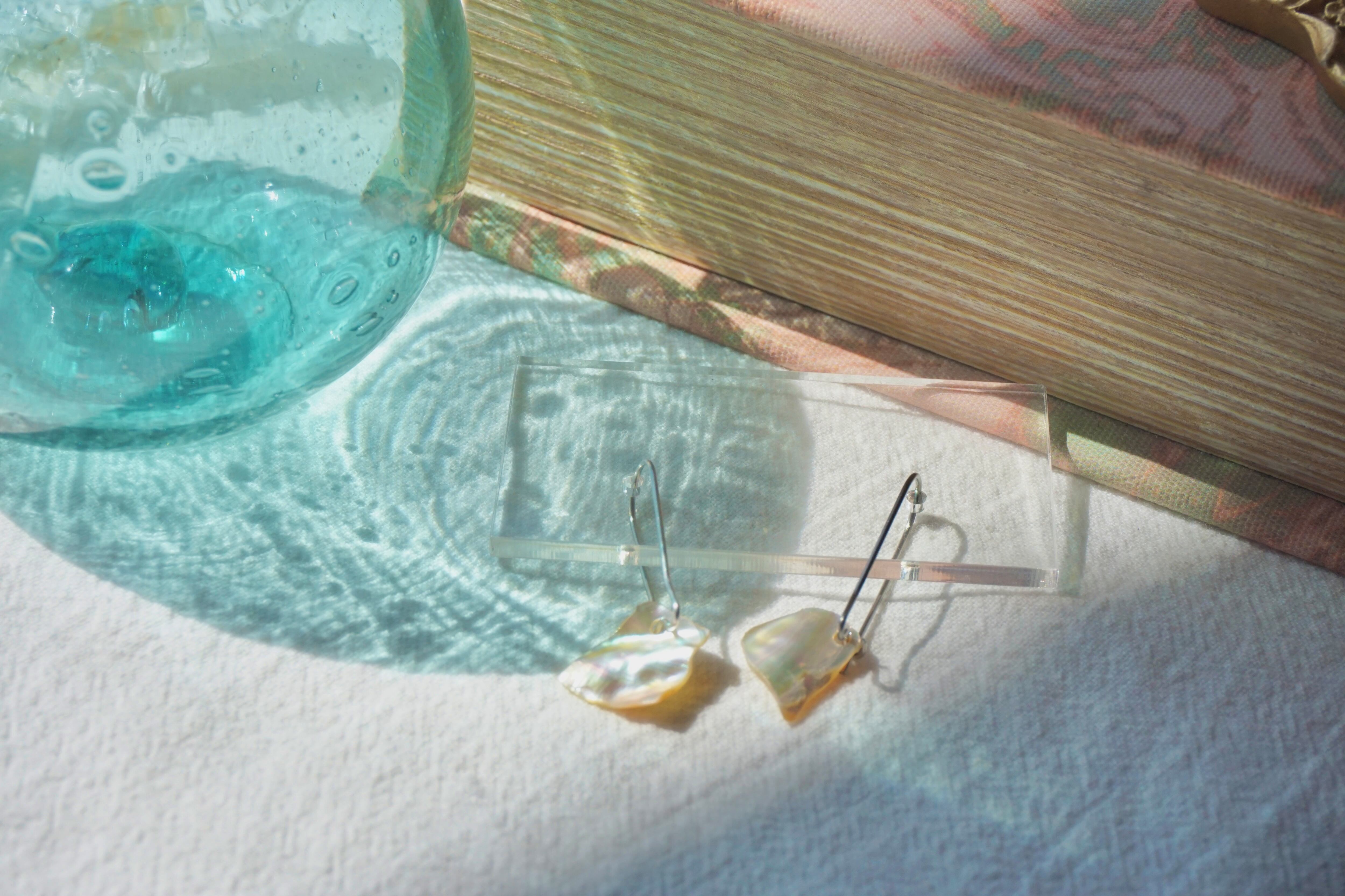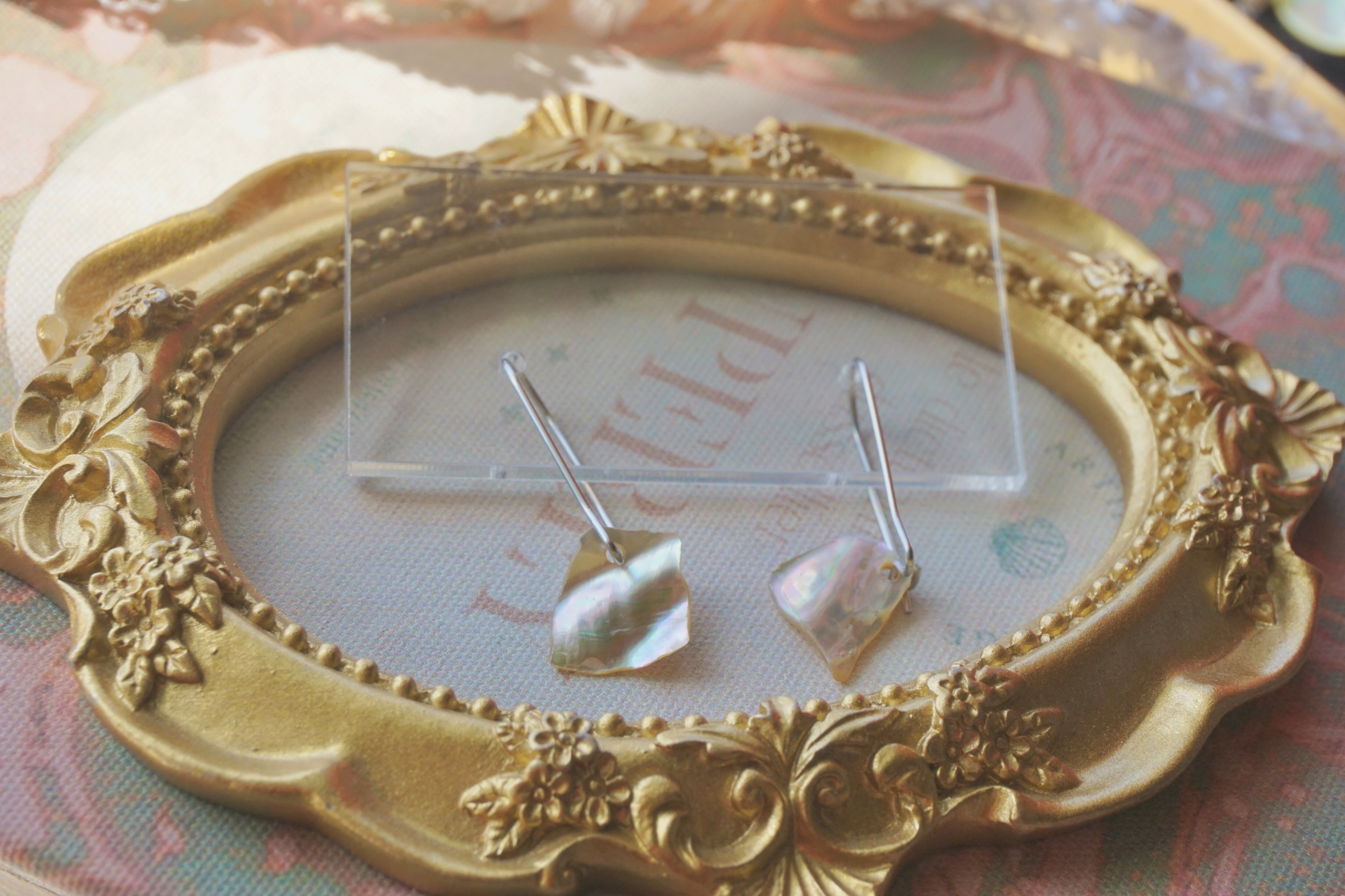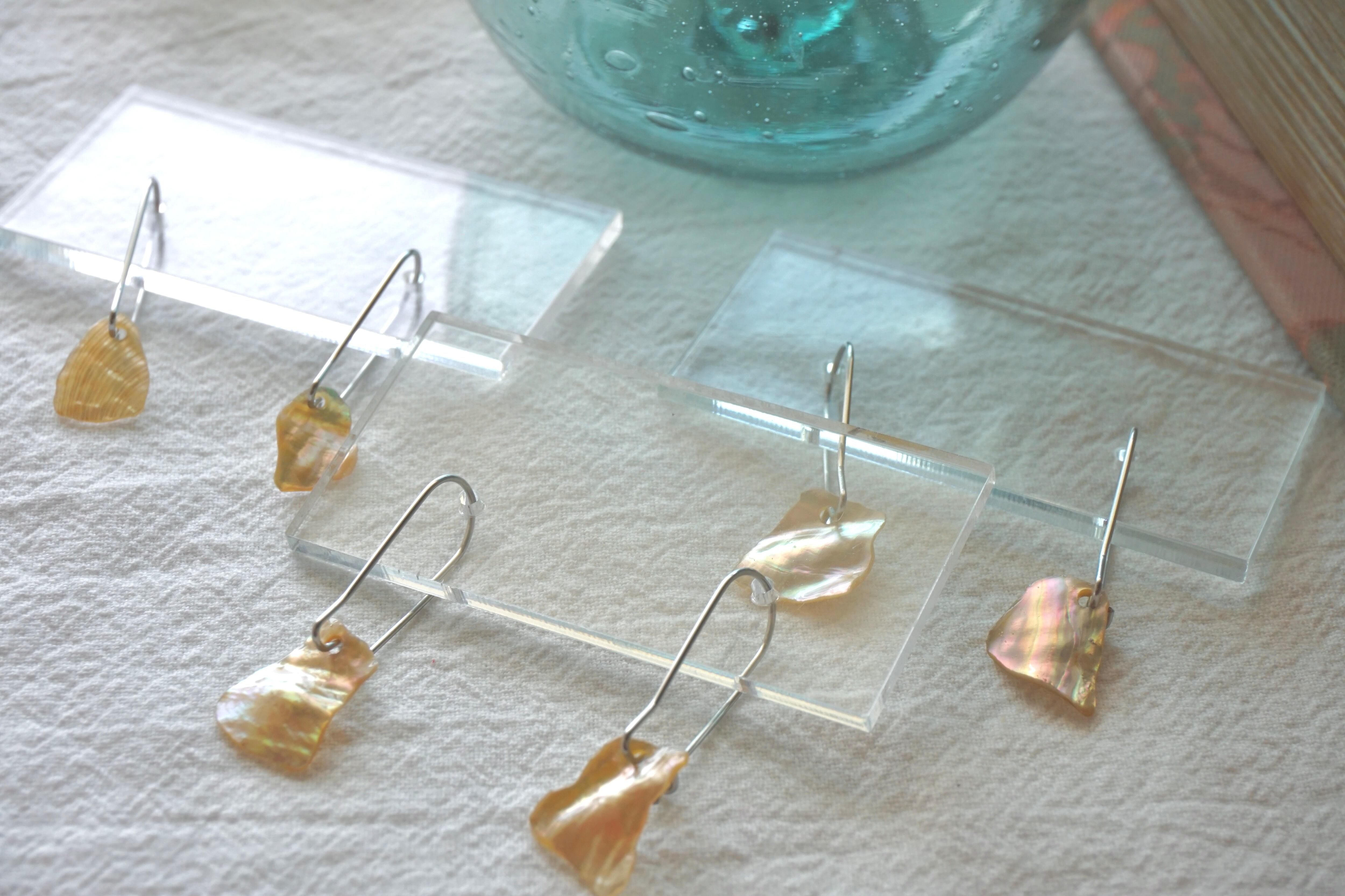 模様を描いたりせず、他のパーツで飾ったりもせず、そのままピアス金具に取り付けました。
