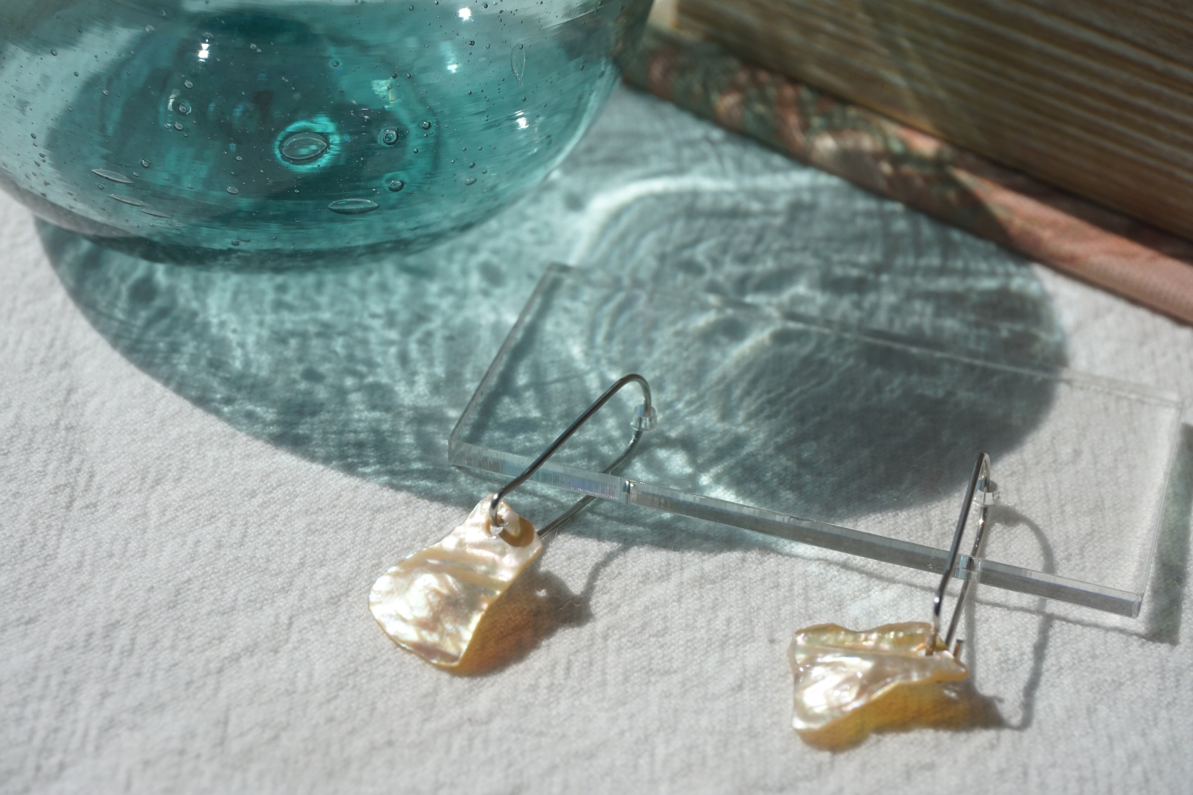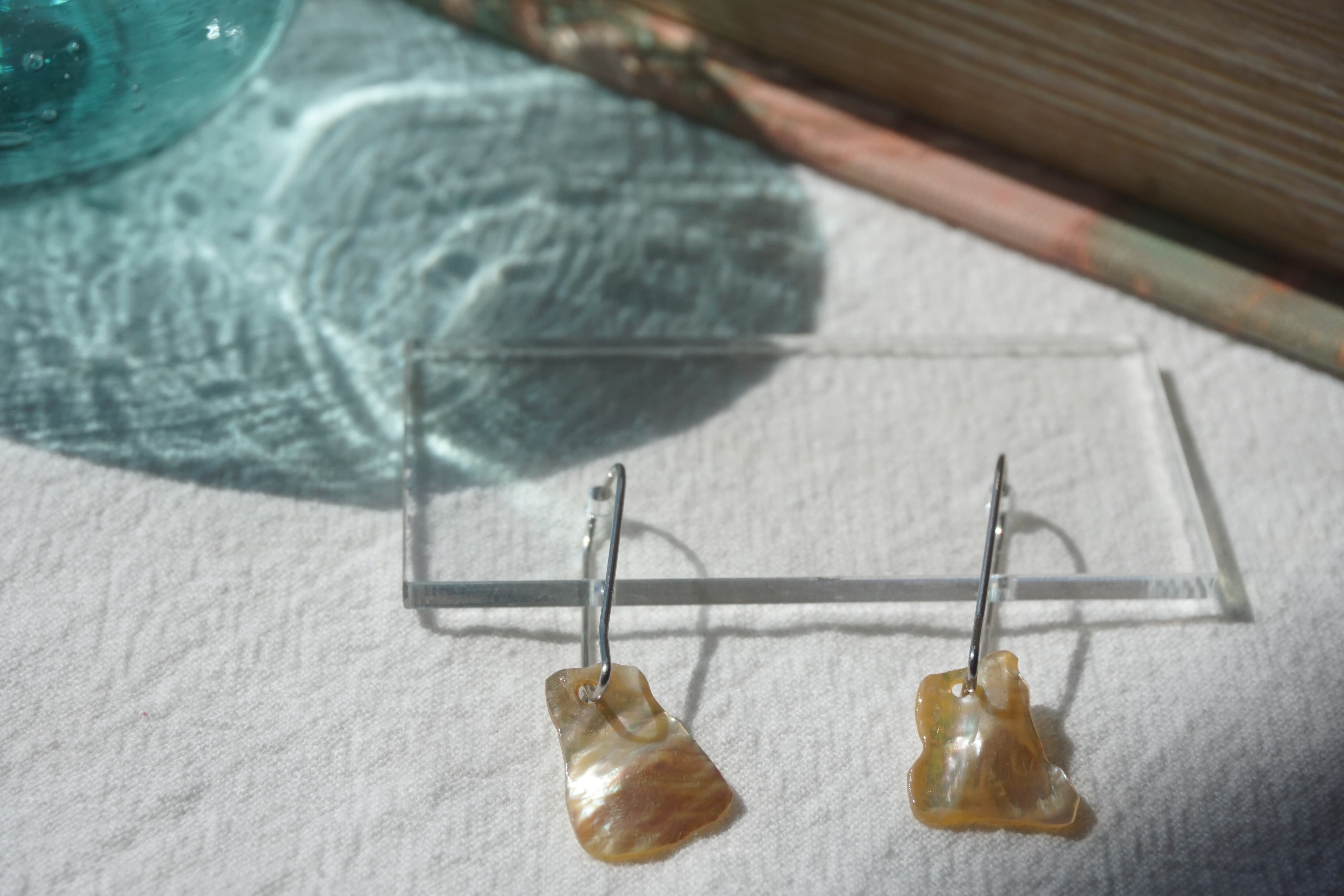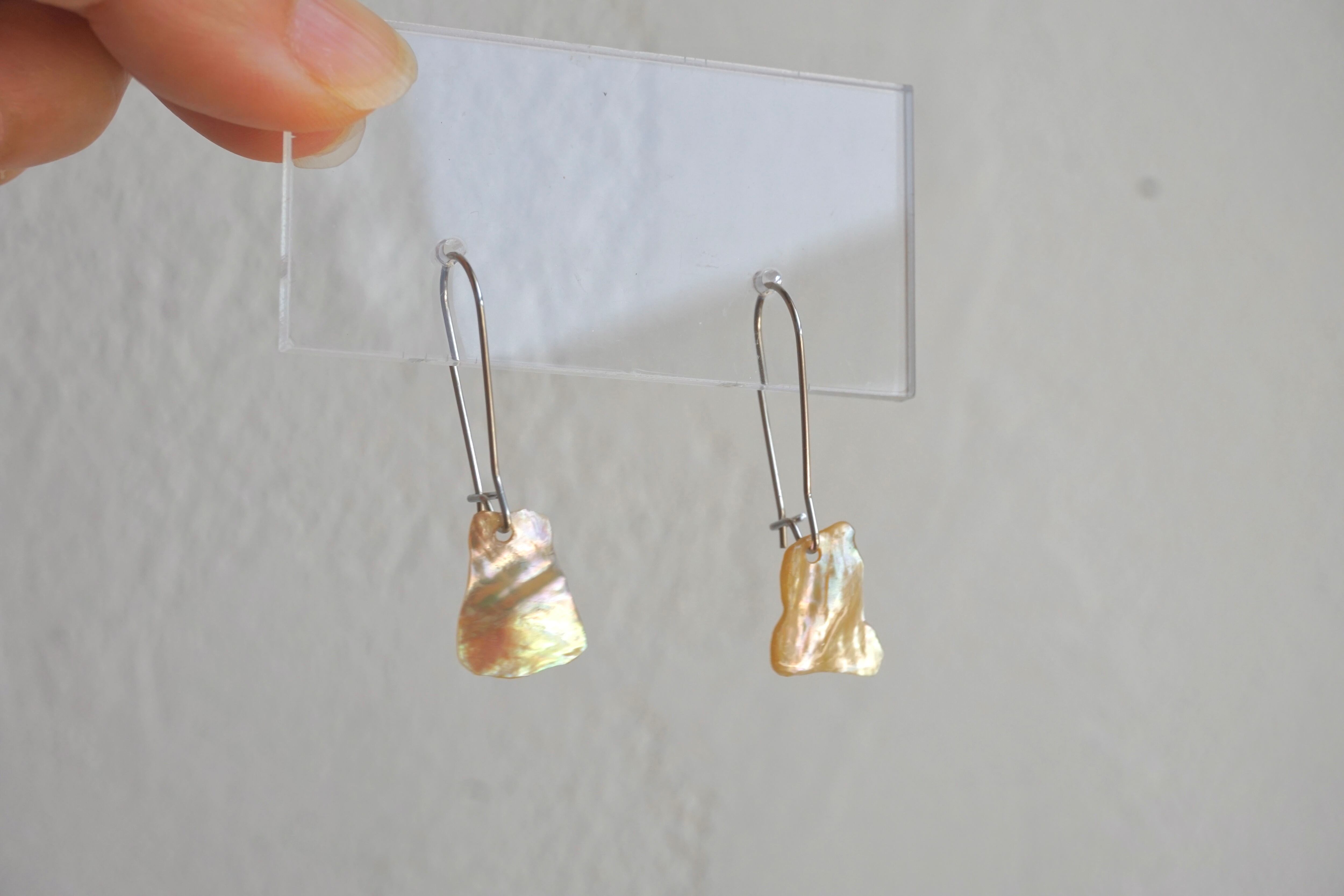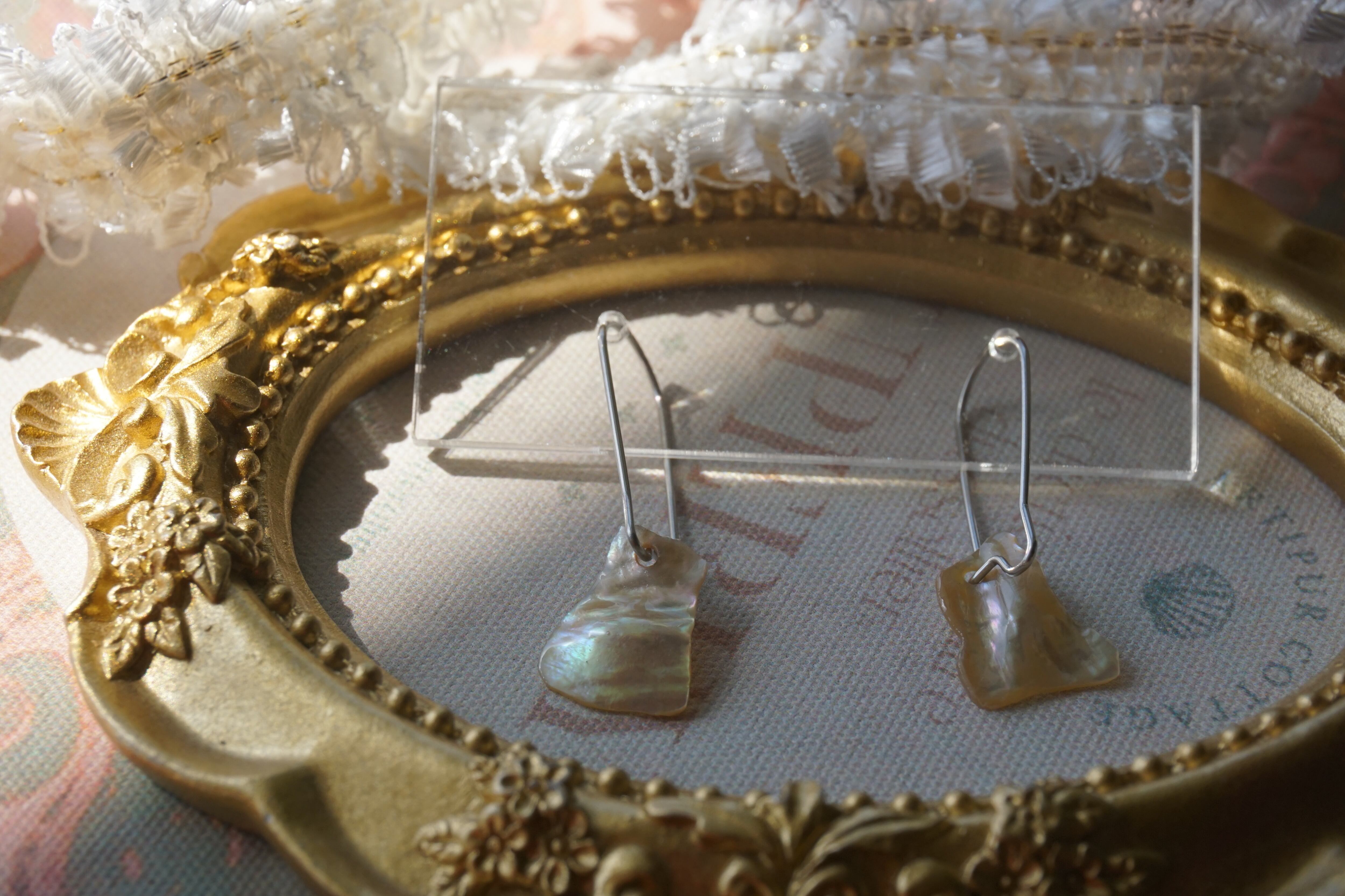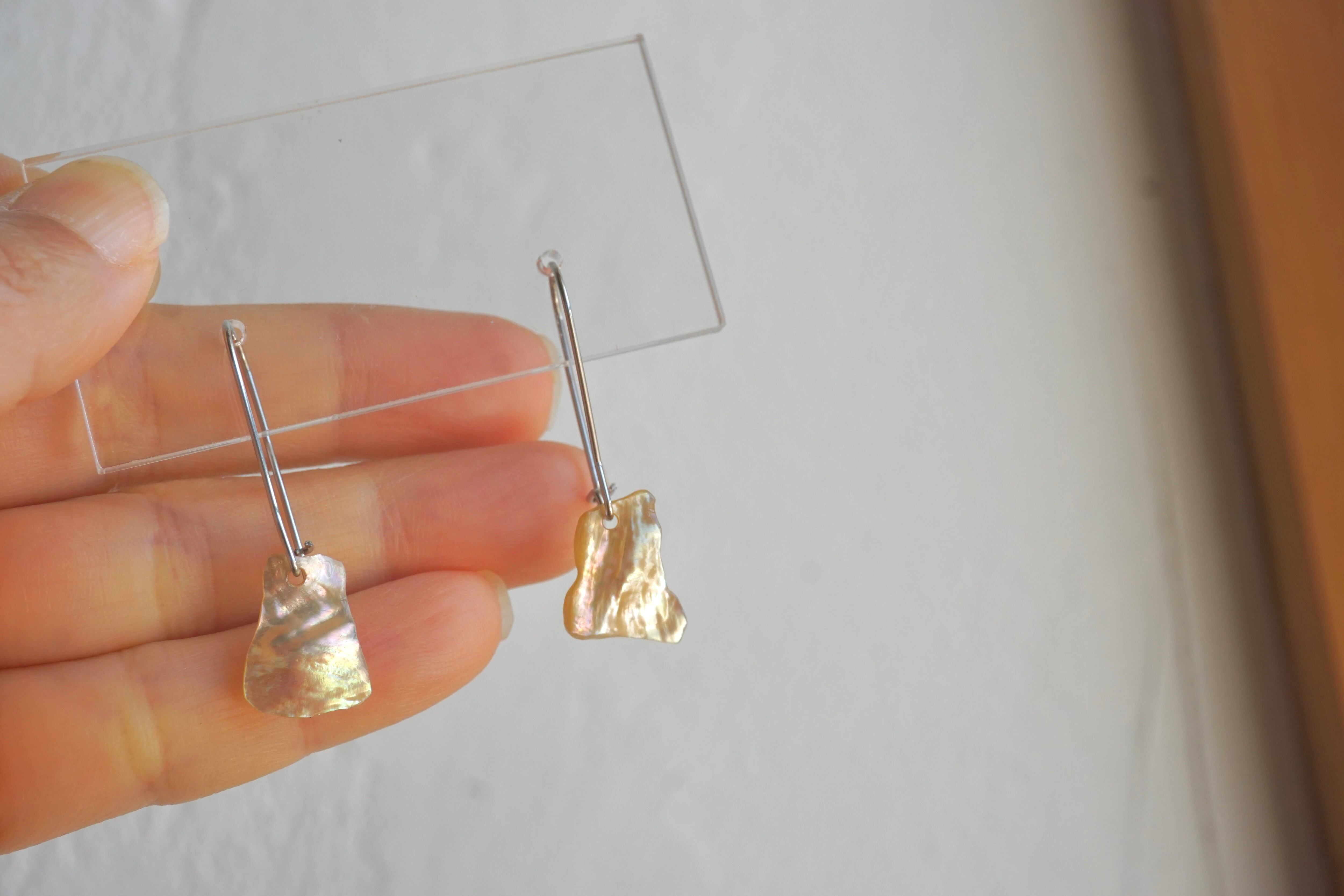模様を描いたりせず、他のパーツで飾ったりもせず、そのままピアス金具に取り付けました。