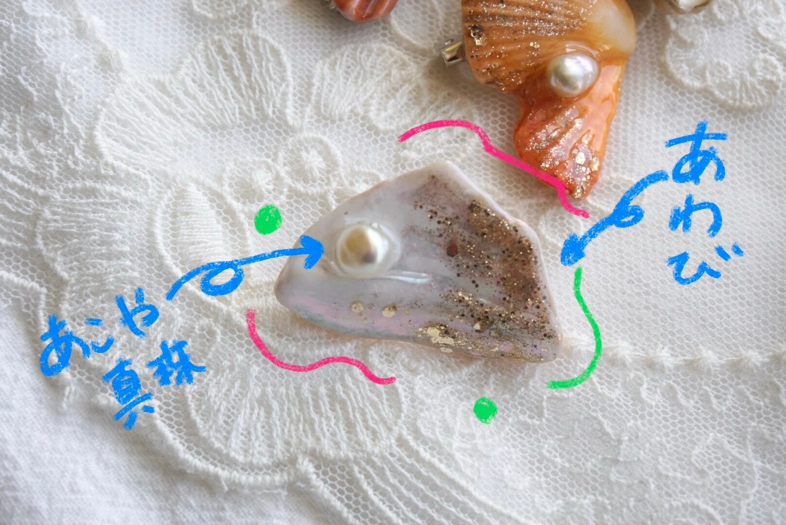 アワビの殻 めでたいブローチ