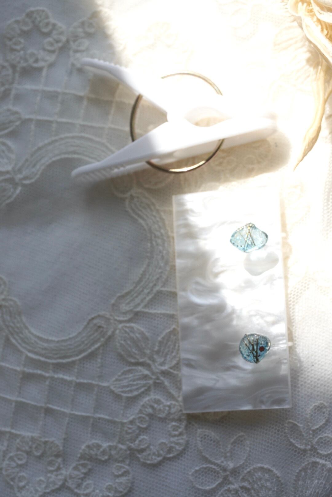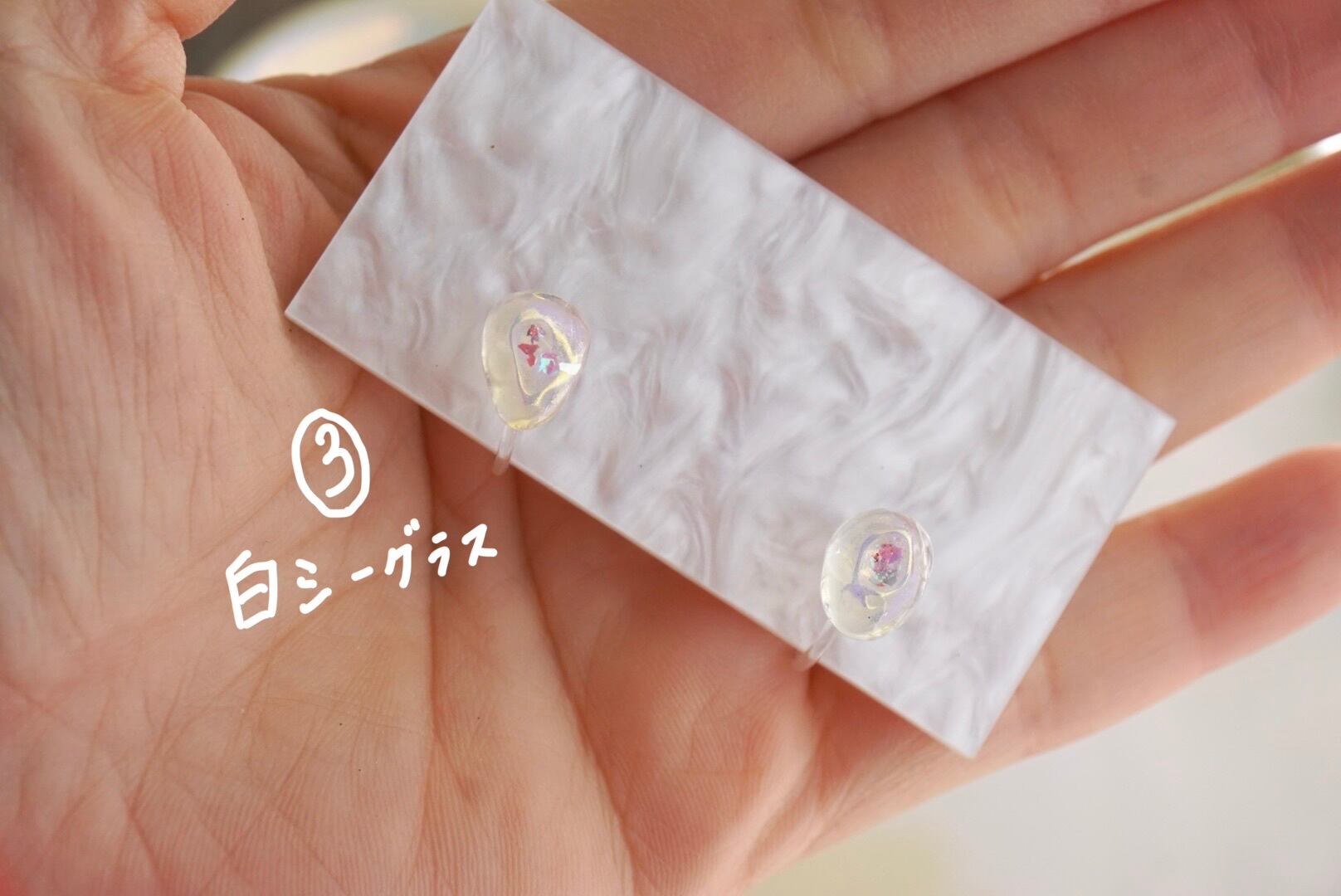 小粒のシーグラスですので、職場にも付けて行きやすい。でも主張のある面白い素材でできています。